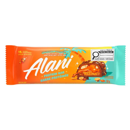 Salty peanuts, caramel, chocolate, pretzels, and toffee -- our Munchies Alani Protein Bars are here to crush your cravings! Bursting with chewy, gooey flavor, get your munch on guilt-free and enjoy 15g protein, 3g sugar, and only 210 calories. Ingredients Chocolate Flavored Coating (Whey Protein Concentrate, Palm Kernel Oil, Maltitol,...