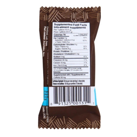 Perfect for that 3pm slump, our delicious chocolate bites are under 90 calories and contain as much caffeine as half a cup of joe without any artificial flavours or colours.