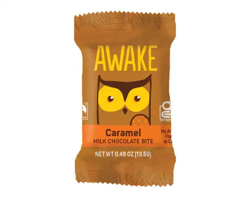 Awake's caffeinated milk chocolate caramel bites are your solution to those mornings when you're running late, can't find your keys, and are still trying to blink away the grogginess. No more coffee cups slipping out of your grip–your daily dose of get-up-and-go cup-of-joe is now wrapped up in these caffeinated...