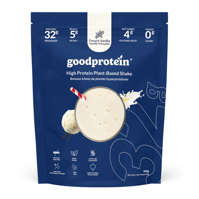 Pea protein, Natural flavours, Medium chain triglycerides (medium chain triglycerides from coconut oil, Ingredients: acacia gum), Guar gum, Acacia gum, Xanthan gum, Rebaudioside M, Salt. soybeans, peanuts, tree nuts, and sesame. May contain: Produced in a facility that also processes wheat, milk, eggs and fish. Good Protein follows strict allergen management protocols in all of our manufacturing facilities