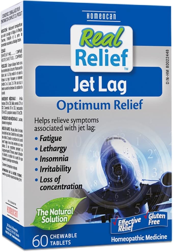 The tablets Jet Lag from our Real Relief range are composed of natural homeopathic ingredients. It can help relieve symptoms associated with jet lag such as fatigue, lethargy, insomnia, loss of concentration, and irritability.